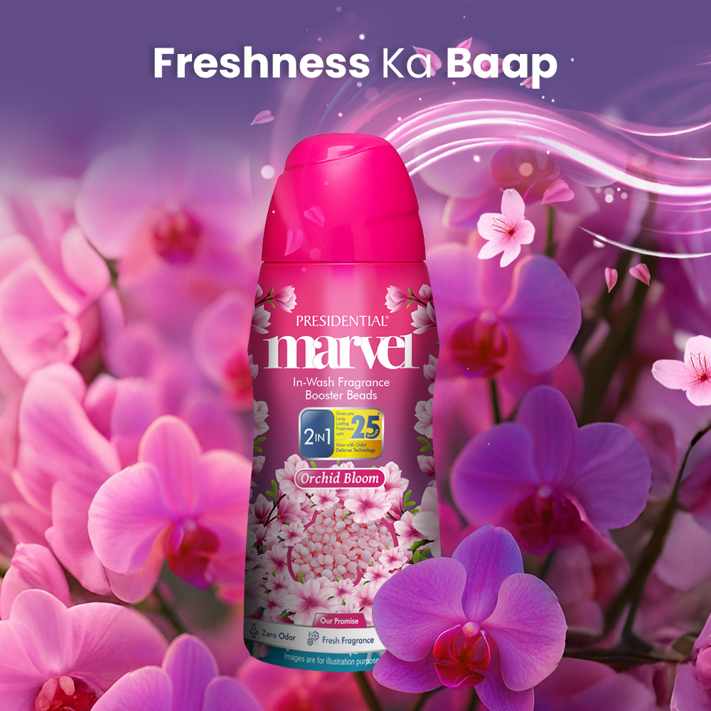 Presidential Marvel In-Wash Fragrance Booster in Orchid Blossom fragrance delivers a refined, enduring scent to your laundry, ideal for bedding, towels, and all washable fabrics, including colors.