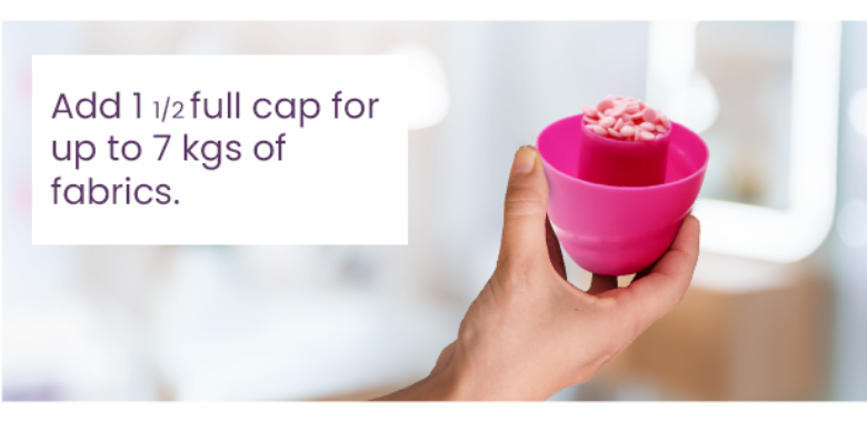 • Measure the booster using the inner cap and pour it directly into the washing machine drum before starting your usual cycle with detergent and softener.